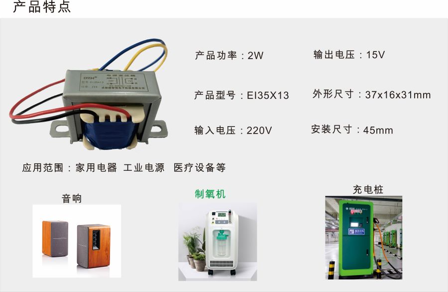 本產品采用耐高溫的增強阻燃骨架、優(yōu)質漆包銅線和高磁通密度的硅鋼片所組成。鐵芯為EI型鐵芯。功率大、效率高、安裝方便、成本低、溫升低、接線安全可靠、防護等級高、電氣性能好等特點,能夠的在額定負載下長期有效工作。適用于50~60Hz的交流電路中,廣泛應用于工業(yè)設備電源和安全隔離照明等等。