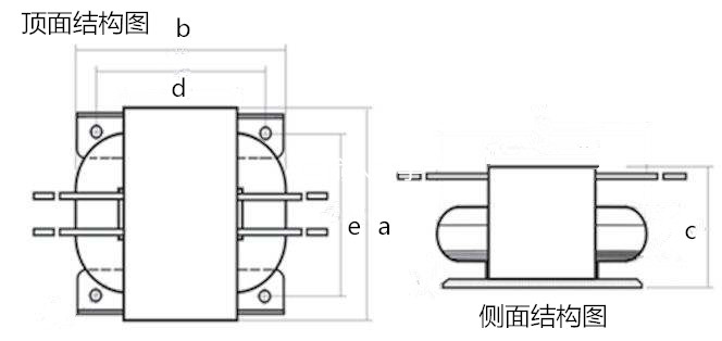 型號 | 容量(VA) | 輸入電壓 | 輸出電壓 | 外形尺寸(mm) 長寬高(a*b*c) | 安裝尺寸 (mm)(d*e) |